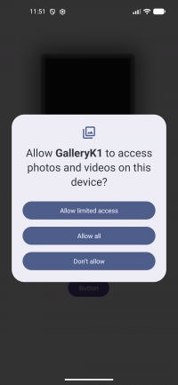 • Permisos dinàmics (veure foto) dins el nostre codi per accedir la galeria de fotos compartida. Es va implementar des d'Android 6 Marshmallow (API 23), i s'ha reforçat a partir d'Android 13 (API 33).